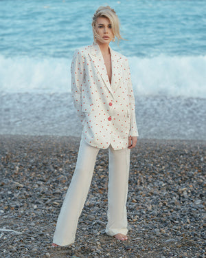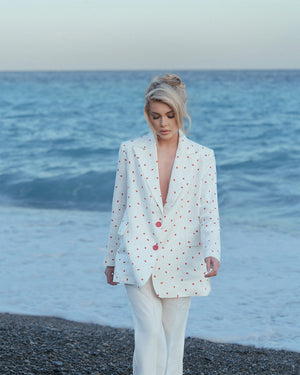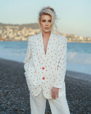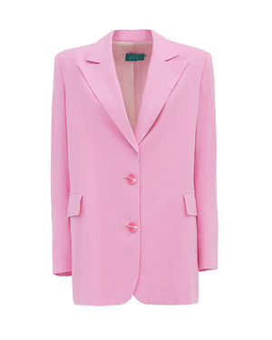 The jacket is crafted from 100% linen for optimal comfort during warm seasons.