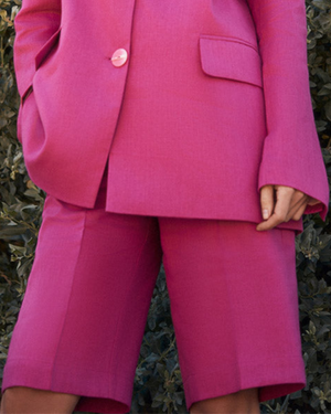 These linen shorts, part of a versatile suit ensemble, can be ordered as a Bermuda model or in a longer style. They offer comfort and a relaxed fit, ideal for various occasions and styling preferences.