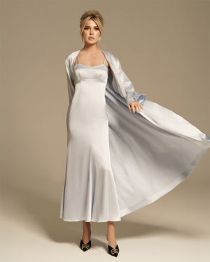 The LOLA Silk Kimono is designed to be worn separately or paired with the LOLA dress for a coordinated ensemble. Crafted from luxurious silk, it boasts a floaty, maxi-length silhouette with long sleeves for a touch of elegance.