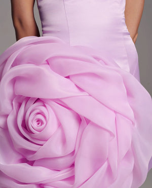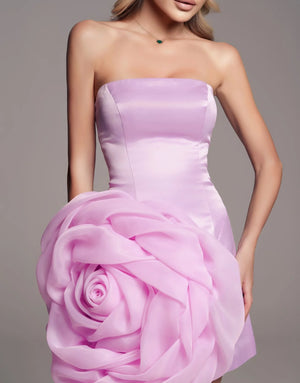 فستان قصير مع وردة كبيرة من الأورجانزا على الجهة الأمامية
