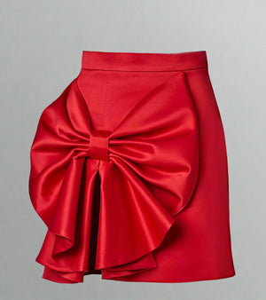 تنورة قصيرة من الساتان مع فيونكة في الأمام