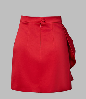 تنورة قصيرة من الساتان باللون الأحمر اللافت للنظر هي قطعة جريئة ومصممة لجذب الأنظار. تتميز بتفاصيل فيونكة كبيرة الحجم في المقدمة، مما يضفي عليها بريقًا ورقيًا. تعانق الصورة الظلية الأنيقة الخصر بينما يضيف القماش الفاخر لمسة من الأناقة. مثالية للمناسبات أو الأحداث الخاصة، تتناسب هذه التنورة بشكل جميل مع القمصان الضيقة والكعب العالي لإطلالة مميزة.