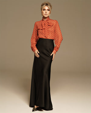 Elegant and timeless, this long maxi silk skirt exudes sophistication with its flowing silhouette and luxurious silk fabric.